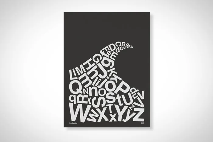 This design combines Orange & Park's love of the ocean and their fascination with typography. It's Helvetica Bold from A to sea! Inks screen printed on French's Speckletone True White and Standard Black Kraft 100#C papers. 18" x 24". Available at orangeandpark.com