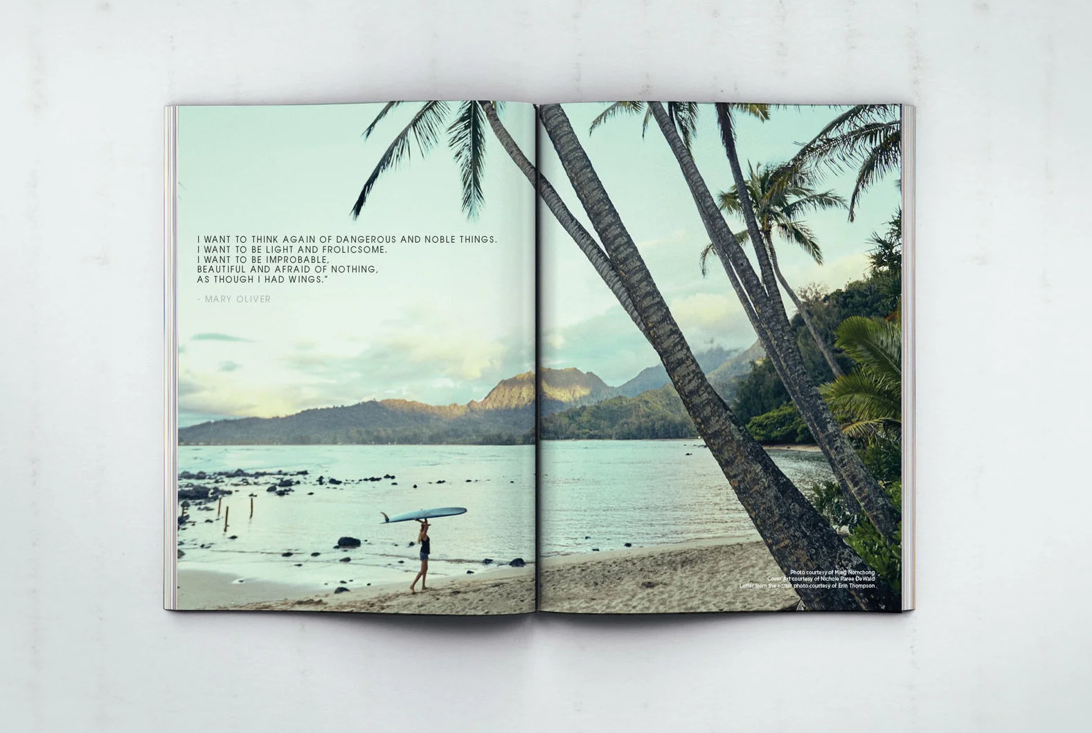 Published twice a year, Salty at Heart Journal provides a space for women to be heard and aims to create thoughtful discussions regarding creativity, the planet, the cosmos, and the human experience. It feature scientists, change-makers, artists, environmentalists, surfers, explorers, and policymakers from across the globe in an art-gallery style layout that resembles more of a book than a magazine. Get your copy here: www.saltyatheart.com