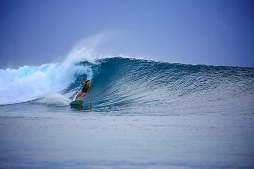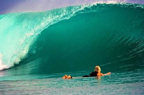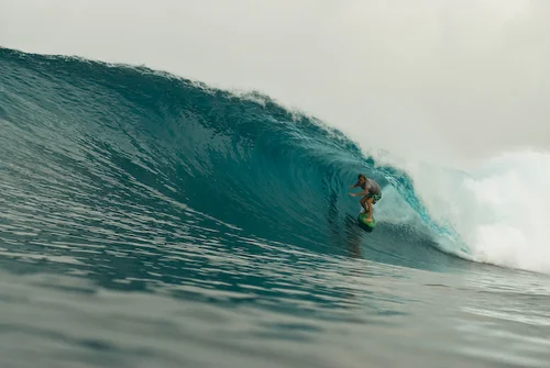 The one place that stands out the most is Tahiti. My dear friends, Kelly Sloan, Jaime Lagardere and I went on a surf trip when we were 17, 14 and 16, respectively. This was our first big trip away from home. We went to Tahiti first and stayed with local host families who had kids who also surfed. While Jamie had it made in a home with windows, doors and hot water showers, Kelly and I ended up being lodged in homes that had no windows, mildewy mattresses and cold bucket-showers. But it didn’t matter. We surfed in the rain, ate bizarre chunks of meat and avocado the size of our heads. We drank too much Tahitian jet fuel (giving me the first hangover of my life but not the worst—that would be a week later in Indo), got stung by sniper mosquitoes and met our first transsexual.