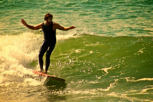 I remember feeling very comfortable on my first couple of waves. The first time I caught a “green face wave,” I felt pure exhilaration. I still get this feeling occasionally. I can’t predict when it will happen. It has happened during contests and during random surf sessions.) But it is a feeling that rises in pulses from the base of my spine and curls up over my head. It’s like runner’s high on steroids.