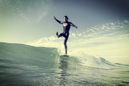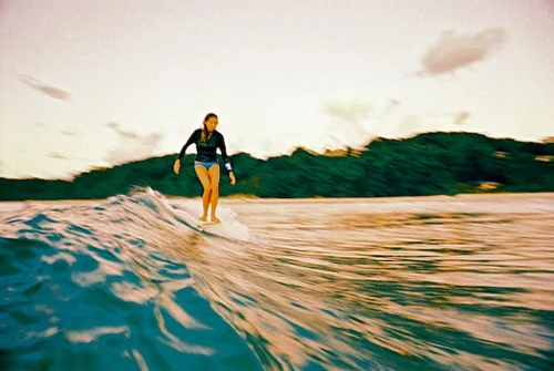 I had 10 years of intensive ballet training and there was never a moment from age 6 that I questioned what I was going to be: A professional ballet dancer. At 16 I suffered from some very serious knee injuries and was forced to stop dancing. It was heart breaking at the time but I also am very grateful that I experienced that intensity and passion towards something. I know now that those years of ballet classes were preparing me for surfing!